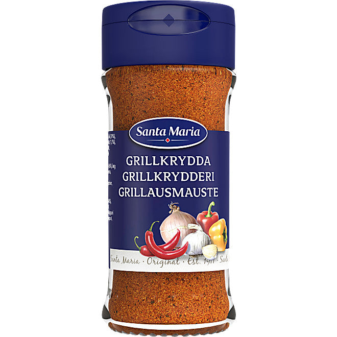 Grillkrydda är en klassisk smaksättare med välbalanserad smak av vitlök, paprika och örter. Grillkrydda är perfekt till hamburgare, potatismos och pommes frites. Grillkrydda passar även bra som allkrydda till smörgåsmat, dressing och marinad. Använd grillkrydda som bordskrydda, eller som pålitlig smaksättare vid spis och grill. • Grillkrydda förvaras helst torrt och mörkt för att bevara aromen längre